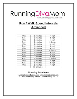 If you are already sick of the treadmill this winter, try mixing up your routine with these run/walk speed intervals.  The introductory level starts with running at 4 MPH and the advanced option starts at 5 MPH.  You will alternate 2-3 minutes of running with walking and peak at short one-minute intervals at your fastest speeds - ranging from 5 MPH to 6.5 MPH.  You will then slow down your speed as you settle back into your starting pace.
